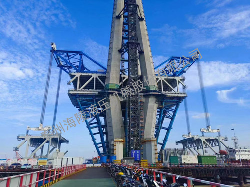我公司生產(chǎn)制作的橋面吊液壓系統(tǒng)是一種集機、電、液、傳感器、觸摸屏控制技術(shù)于一體的用于橋梁主梁節(jié)段吊裝施工的設(shè)備。它可以實現(xiàn)提升系統(tǒng)、下放系統(tǒng)、集成橋面吊機行走、頂升及橫向縱向糾偏液壓系統(tǒng)的操作